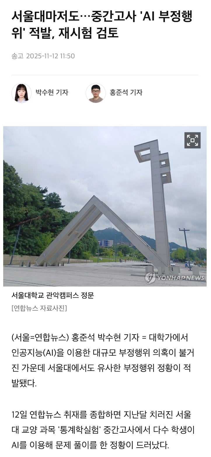 서울대, 중간고사 AI 부정행위 적발 작성자 정보 호랭이 쪽지보내기 자기소개 아이디로 검색 전체게시물쪽지보내기 자기소개 아이디로 검색 전체게시물 작성 작성일 2025.11.13 03:55 조회 487 조회 추천 0 추천 댓글 0 목록 컨텐츠 정보 목록 본문 ㅎ 추천 비추천 0 추천 비추천 0 공유 공유하기 URL 복사 sns공유하기 레이어 닫기 신고 관련자료 목록 전체 댓글 0 개 등록순 최신순 댓글 등록 본문 보기 새로고침 등록된 댓글이 없습니다. 1(current) 새로운 댓글 확인 로그인한 회원만 댓글 등록이 가능합니다.